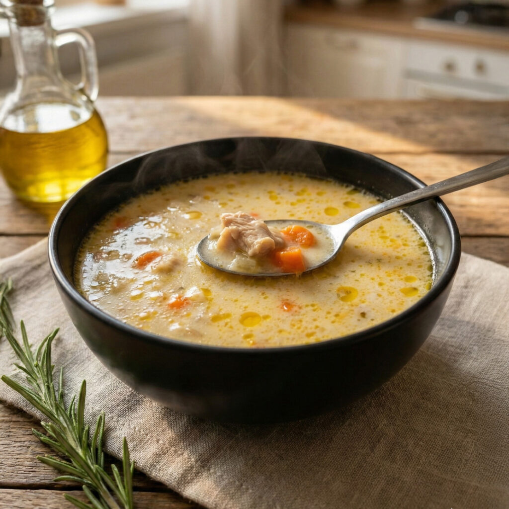 Ciorbă de pui a la grec cu ardei iute