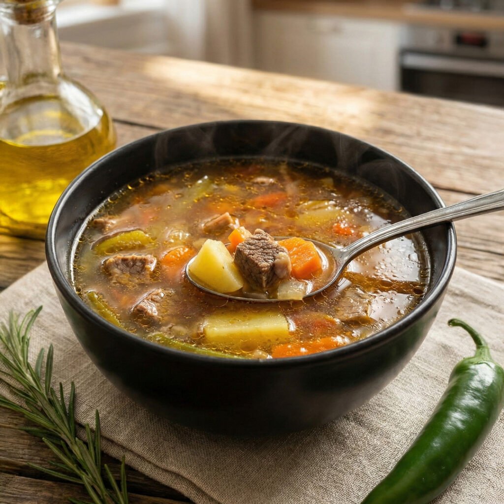 Ciorbă de vacuță cu ardei iute