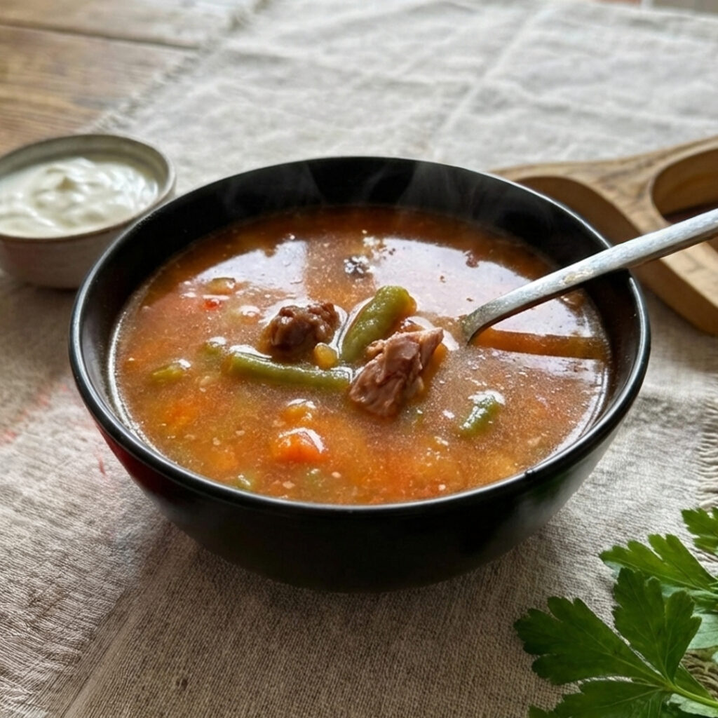 Ciorbă de fasole verde cu afumătură și ardei iute
